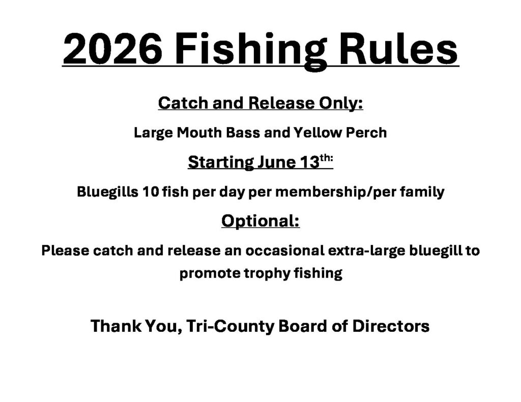 Fishing is open to members with a current membership card only. Please have your card available if asked for it. For anyone 16 years of age or older, they must have a valid fishing license according to the DNR. Please have respect for your fellow members and obey the rules.